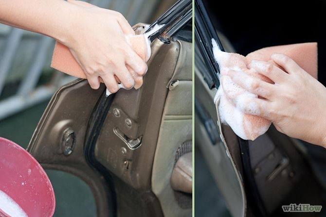 2..Dopo aver lavato e asciugato le guarnizioni delle portiere, applica uno strato di silicone spray.